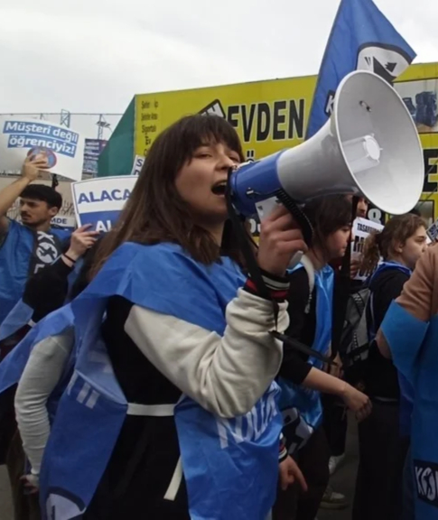 Eylül Naz Doğan: Kampanyamızın üç talebi var. KYK burslarının asgari ücretin yarısına sabitlenmesi, güncel kredi borçlarının silinmesi ve kredileri bursa çevrilmesi.